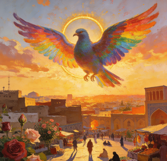 Occasionally, the Simurgh would appear in Shiraz’s sky, witnessing the city’s prosperity. People told Kaveh’s story for centuries, remembering: Goodness is not fragile. As long as one clings to justice and compassion in their heart, even in darkness, they can be reborn like the roses of Shiraz, blooming with eternal radiance.