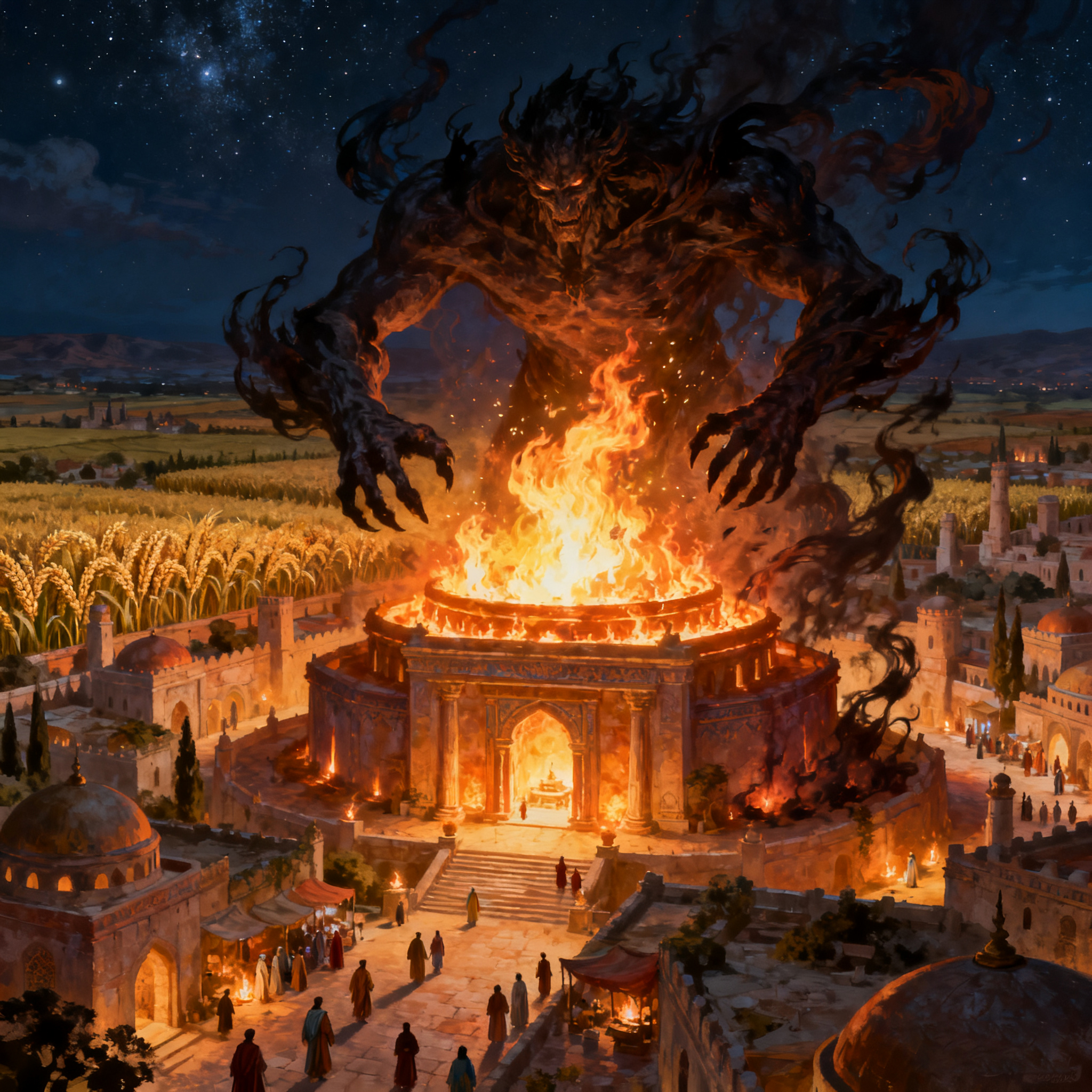 That winter arrived unusually harshly. The cold breath of Apaosha, the demon of drought, seeped into the city-state through cracks in the mountains. Worse still, Druj, the demon of deceit and a servant of Angra Mainyu, infiltrated the city disguised as a wandering priest, misleading some villagers with lies: "The sacred fire drains the earth’s vitality. Only by extinguishing it will the harsh winter retreat." On a snowy, stormy night, while Karl patrolled the borders, the deluded villagers broke into the Temple of the Sacred Fire. In the chaos, the bronze cauldron holding the sacred fire was knocked over. Though the fire did not die out completely, it dwindled to faint embers, like a candle flickering in the wind.