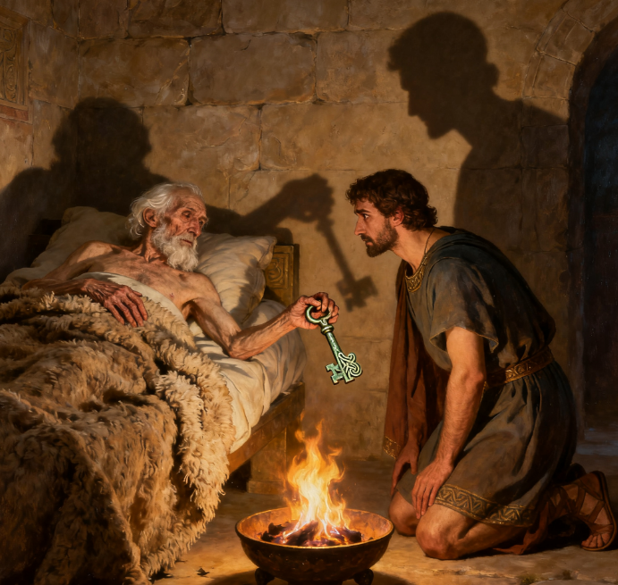 On his deathbed, the elderly priest summoned Darius to the sacred fire: "The source of the Atar Fire lies in the Spring of Life, deep within the Ardashir Mountains. Submerged in the spring is a piece of Creation Turquoise, which has absorbed ten thousand years of sunlight and goodness, serving as the fire’s energy core. Now the spring is frozen by the devil’s Ice of Oblivion. You must take your turquoise pendant, melt the ice, and let the Spring of Life flow again—only then can the sacred fire reignite." With that, he handed Darius a bronze key inlaid with haoma patterns and closed his eyes forever.